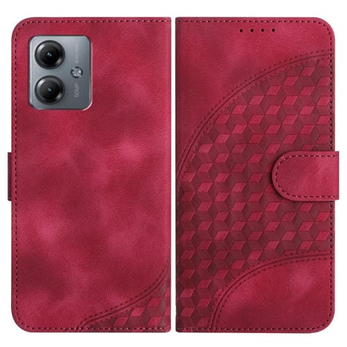 - 1x Funda de Cuero Motorola Moto G14 Yx0060 con Relieve y Cabeza de Elefante con Cordón (Rojo Rosa)