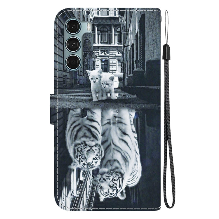 Funda de Cuero para Motorola Moto G200 5G con Dibujo Coloreado y Textura de Cristal (Reflejo de Tigre Gato)