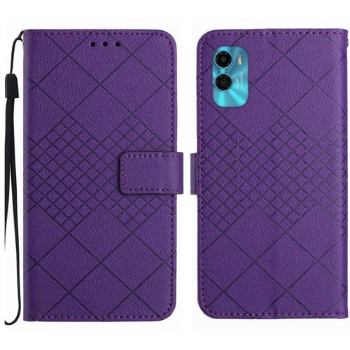 Funda de Cuero Motorola Moto G22 4G y E22S 4G con Textura de Rejilla Rómbica (Púrpura)