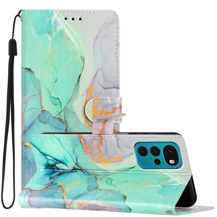 Estuche para Motorola Moto G22 de Cuero con Dibujo Coloreado (Mármol Verde)