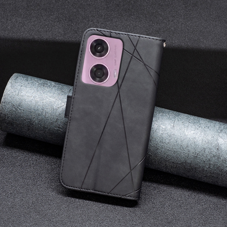 Funda para Motorola Moto G24 de Cuero con Textura de Rombo y Hebilla Magnética (Negro)