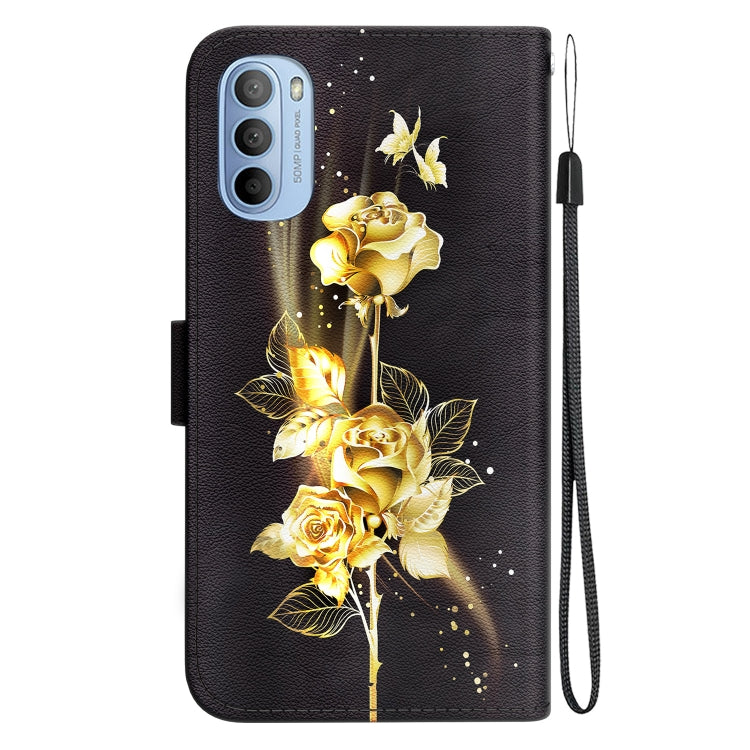 Funda para Motorola Moto G31 / G41 de Cuero con Dibujo Coloreado y Textura de Cristal (Mariposa Dorada Rosa)