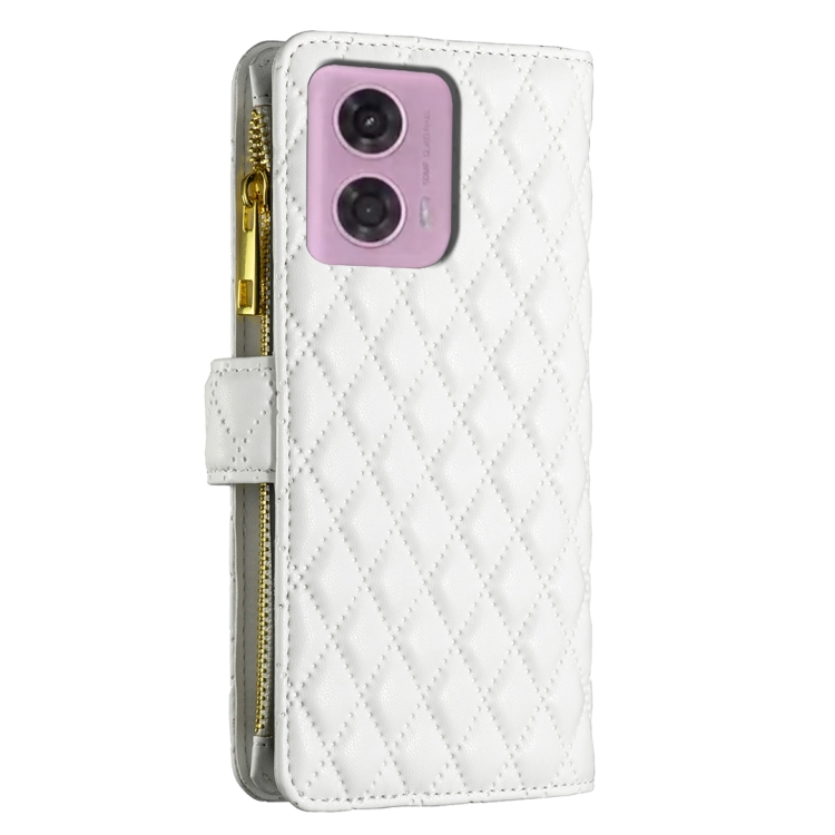 Funda de Cuero con Tapa para Motorola Moto G34 5G Diamond Lattice Zipper (Blanco)