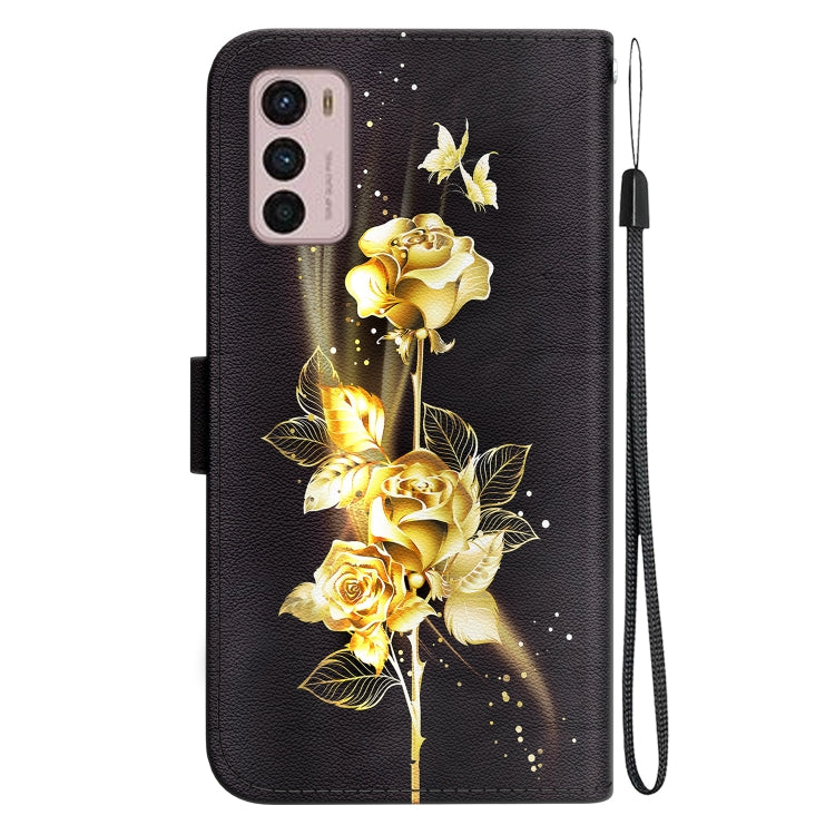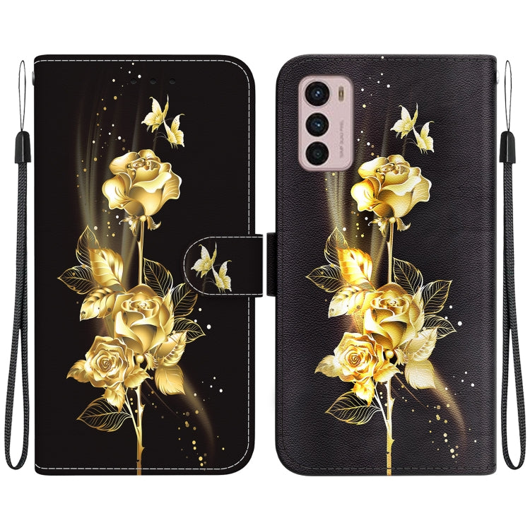 Funda de Cuero para Motorola Moto G42 con Dibujo Coloreado y Textura de Cristal (Mariposa Dorada Rosa)