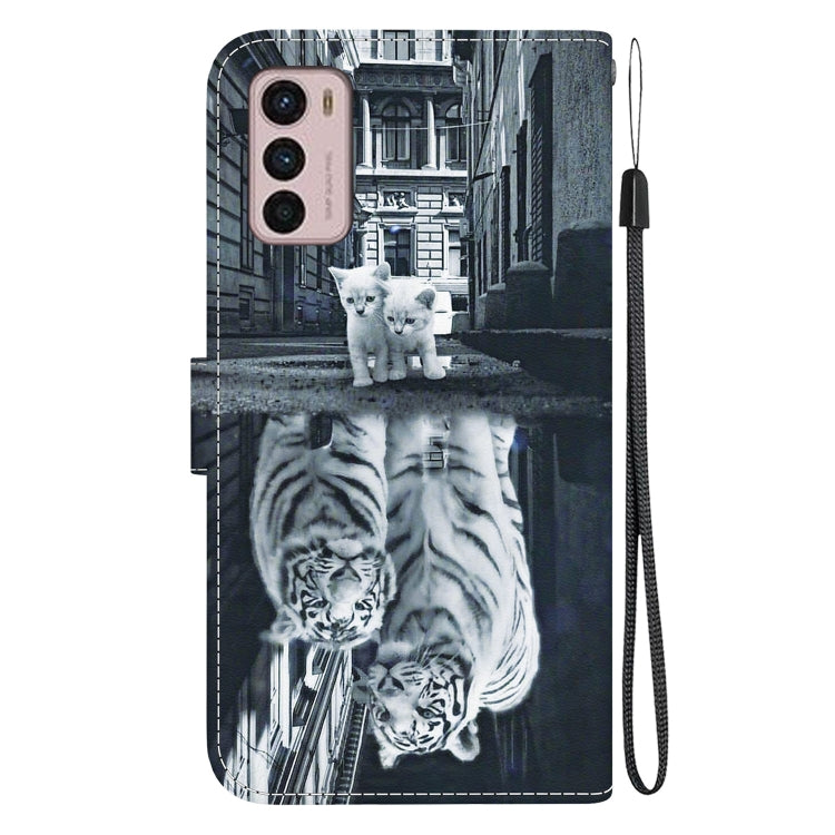 Funda de Cuero para Motorola Moto G42 con Dibujo Coloreado y Textura de Cristal (Reflejo de Tigre de Gato)