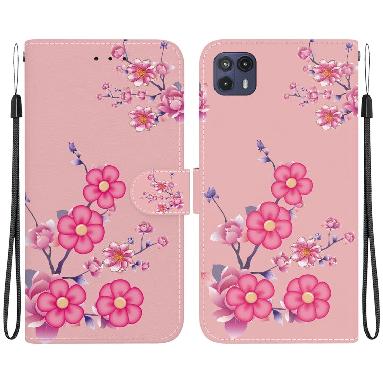 Funda de Cuero para Motorola Moto G50 5G con Dibujo Coloreado y Textura de Cristal (Flores de Cerezo)