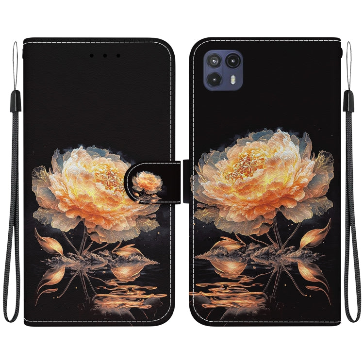 Funda de Cuero para Motorola Moto G50 5G con Dibujo Coloreado y Textura de Cristal (Peonía Dorada)