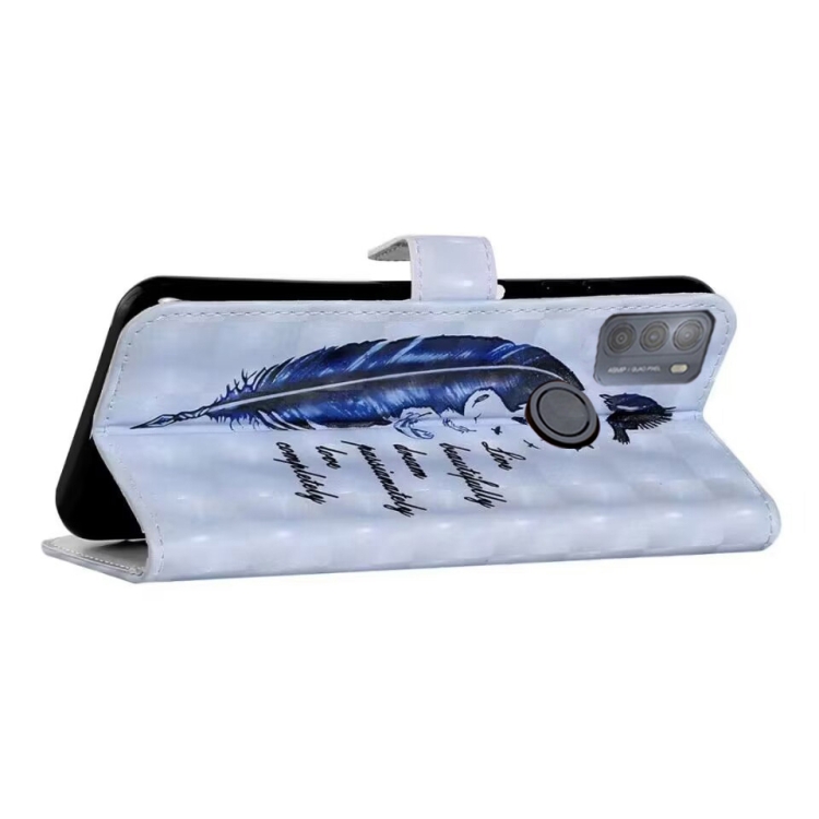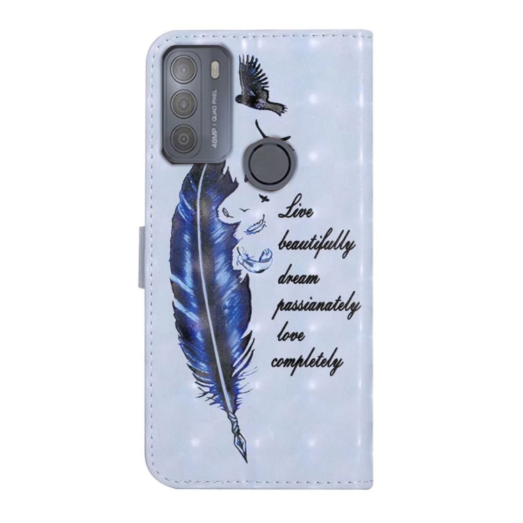 Funda de Cuero para Motorola Moto G50 con Dibujo 3D en Relieve al Óleo (Pluma Azul)