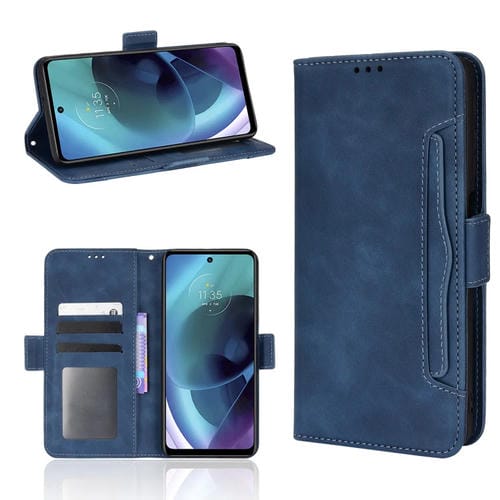 Funda de Cuero para Motorola Moto G52J 5G con Ranuras para Tarjetas y Textura Skin Feel (Azul)
