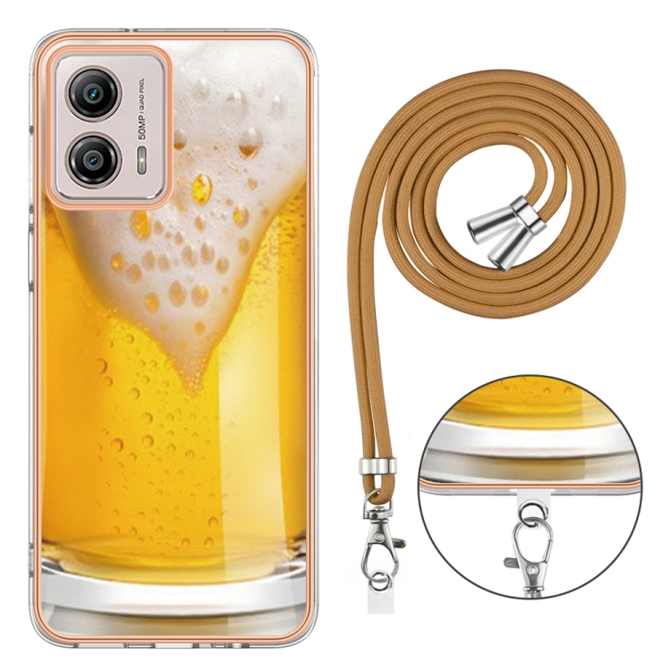 Estuche para Motorola Moto G53 G13 G23 Imd Doble Cara con Galvanoplastia y Cordón (Cerveza de Barril)