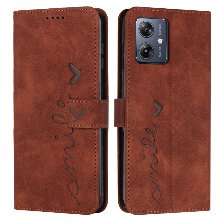 Funda para Motorola Moto G54 Skin Feel Heart Cuero En Relieve con Cordón Largo (Marrón)