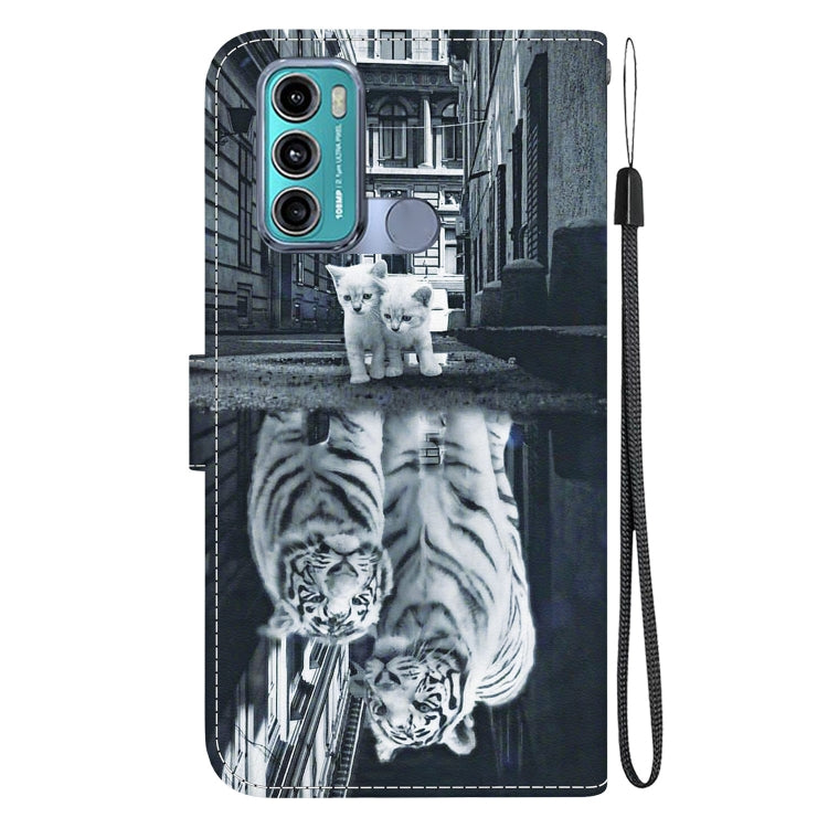 Funda de Cuero para Motorola Moto G60 / G40 Fusion con Dibujo Coloreado (Reflejo de Tigre Gato)