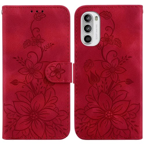 Funda para Motorola Moto G62 5G Lily de Cuero en Relieve (Rojo)