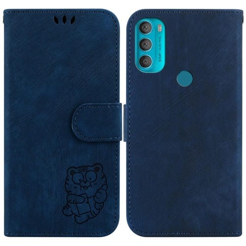 For Motorola Moto G71 5G Little Tiger Embossed Leather Phone Case(Dark Blue)