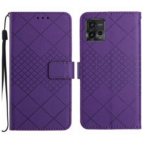 - 1x Funda de Cuero para Motorola Moto G72 4G con Textura de Rejilla Rómbica (Púrpura)