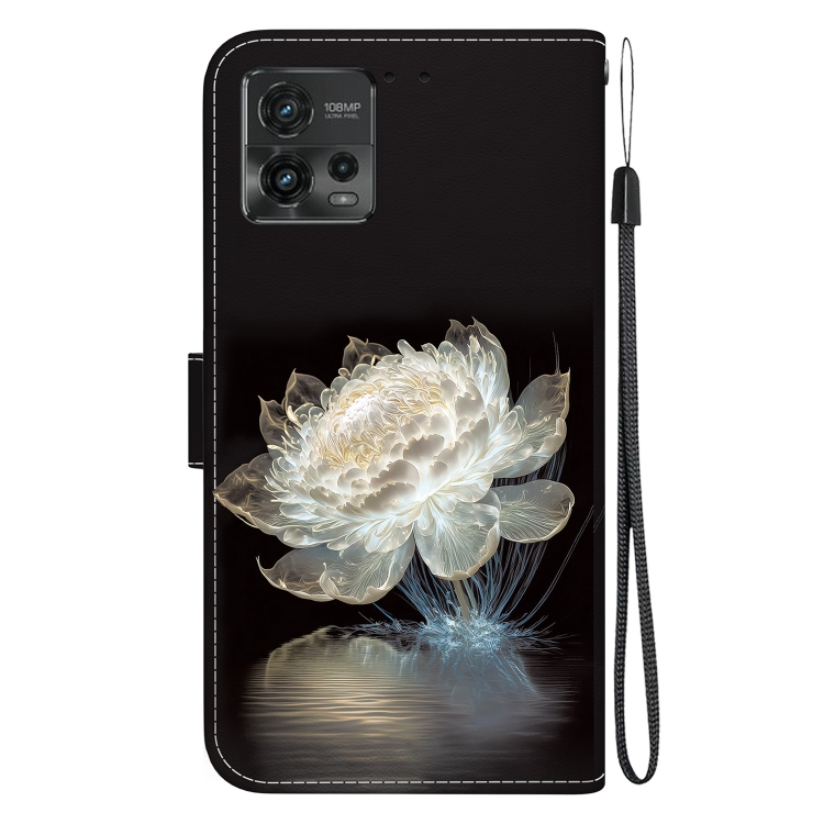 Estuche de Cuero para Motorola Moto G72 con Dibujo Coloreado y Textura de Cristal (Peonía de Cristal)