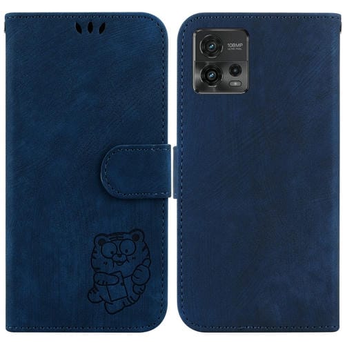 For Motorola Moto G72 Little Tiger Embossed Leather Phone Case(Dark Blue)