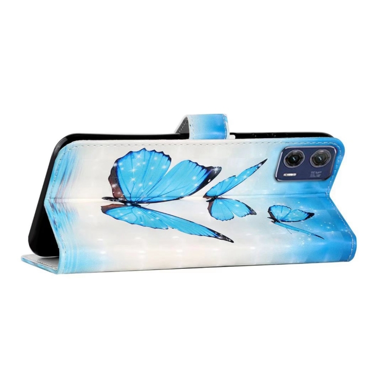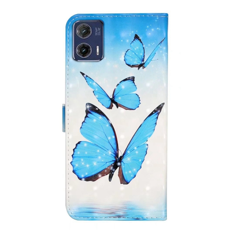 Funda de Cuero para Motorola Moto G73 con Dibujo 3D en Relieve al Óleo (3 Mariposas)