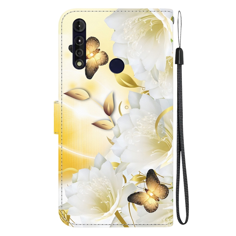 Funda de Cuero para Motorola Moto G8 Power Lite con Dibujo Epiphyllum de Mariposa Dorada (Textura Cristal)