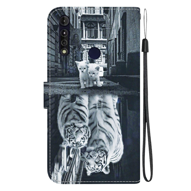 Funda de Cuero para Motorola Moto G8 Power Lite con Dibujo Coloreado y Textura de Cristal (Reflejo de Tigre Gato)