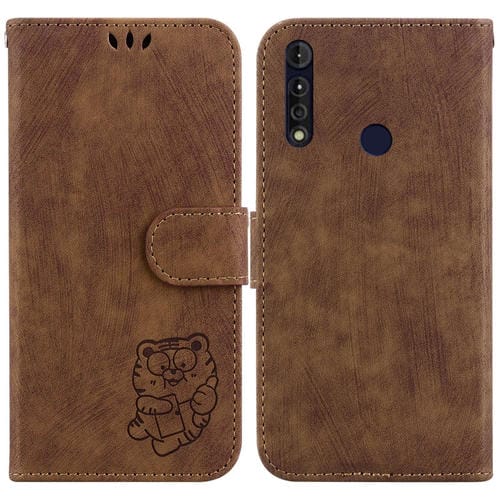 For Motorola Moto G8 Power Lite Little Tiger Embossed Leather Phone Case(Brown)