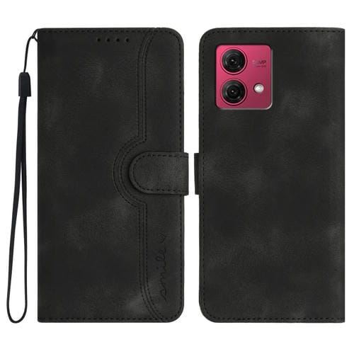 - 1x Funda de Cuero para Motorola Moto G84 5G con Sensación de Piel y Patrón de Corazón (Negro)