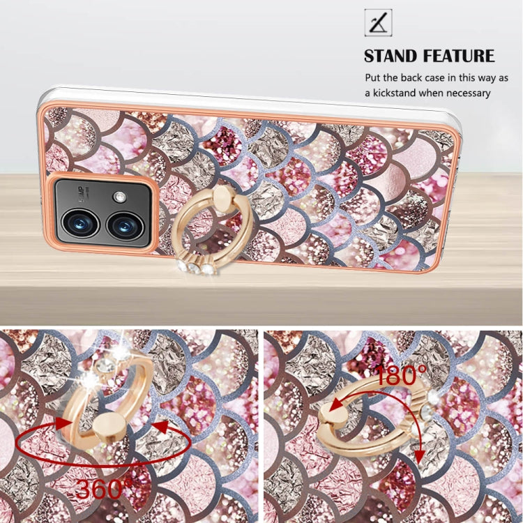 Funda para Motorola Moto G84 TPU con Galvanoplastia y Anillo (Escamas Rosadas)