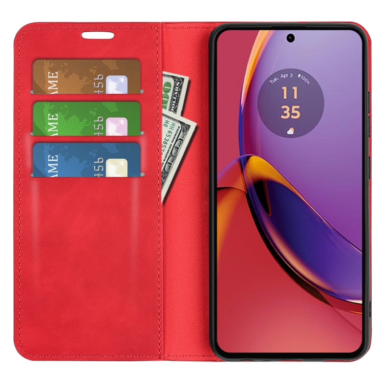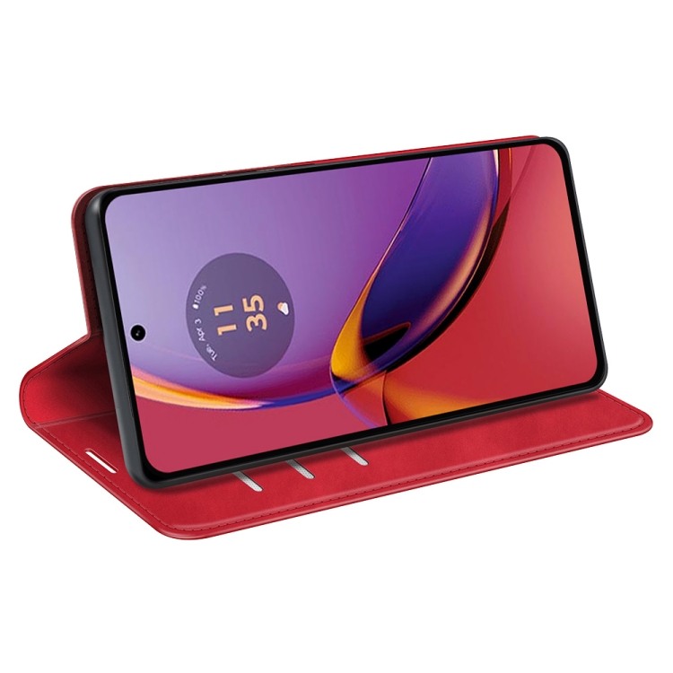 Funda de Cuero para Motorola Moto G84 con Succión Magnética de Piel Retro (Rojo)