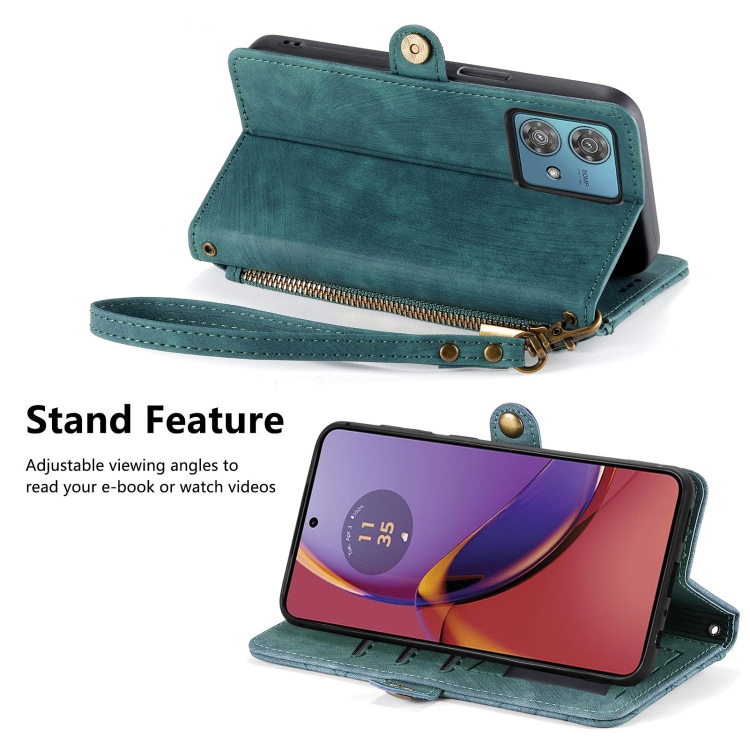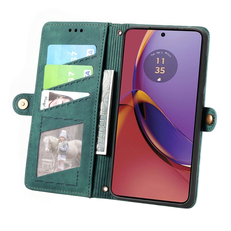 Funda de Cuero para Motorola Moto G84 con Hebilla Lateral y Billetera con Cremallera (Verde)