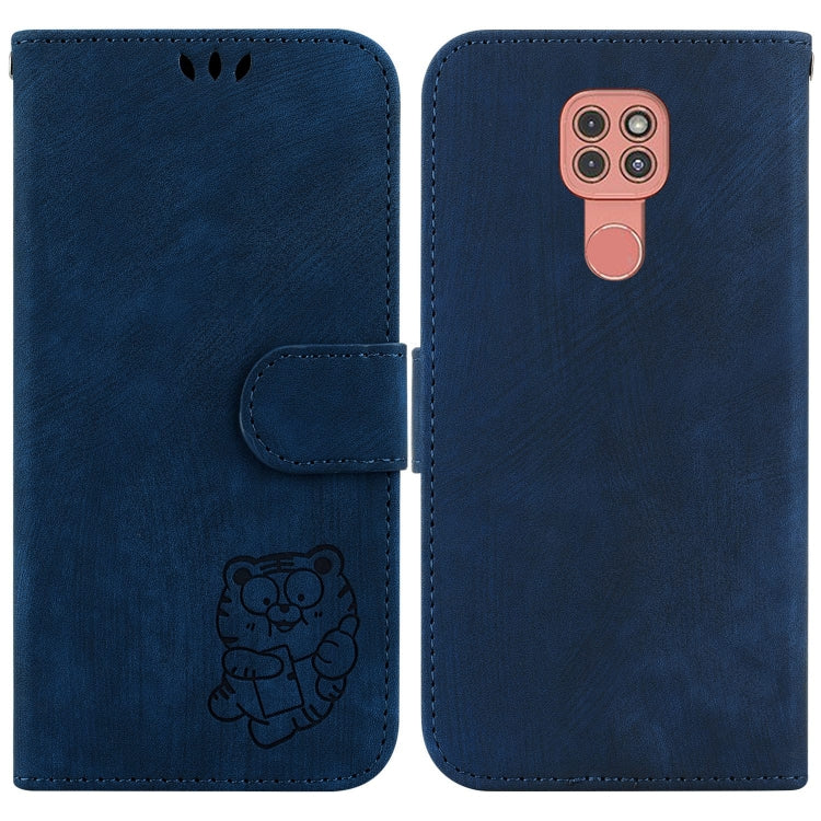 Funda para Motorola Moto G9 Play y E7 Plus de Cuero con Relieve Little Tiger (Azul Oscuro)