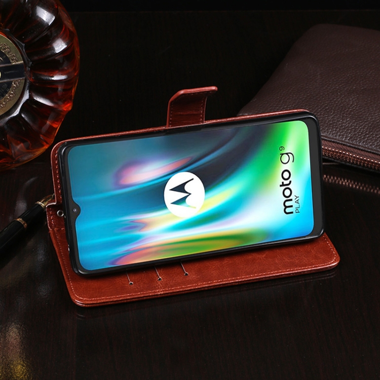 Para Motorola Moto G9 Play idewei Crazy Horse Texture Funda de cuero con tapa horizontal con soporte, ranuras para tarjetas y billetera (rosa roja)