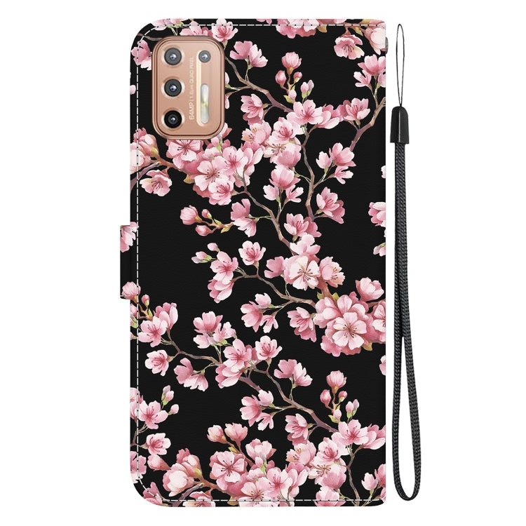Funda de Cuero para Motorola Moto G9 Plus con Dibujo Coloreado y Textura de Cristal (Flor de Ciruelo)