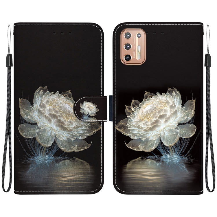 Funda de Cuero para Motorola Moto G9 Plus con Dibujo Coloreado y Textura de Cristal (Peonía de Cristal)