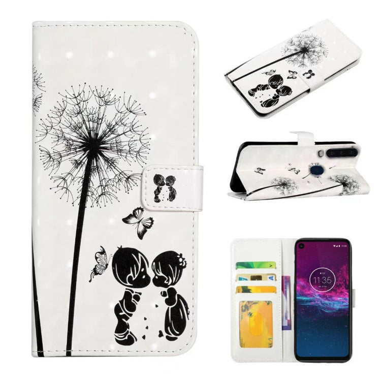 Funda de Cuero para Motorola Moto P40 Power con Dibujo 3D en Relieve (Pareja de Diente de León)