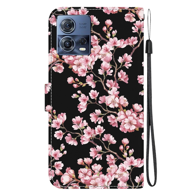 Funda de Cuero para Motorola Moto S30 Pro 5G con Dibujo Coloreado y Textura de Cristal (Flor de Ciruelo)