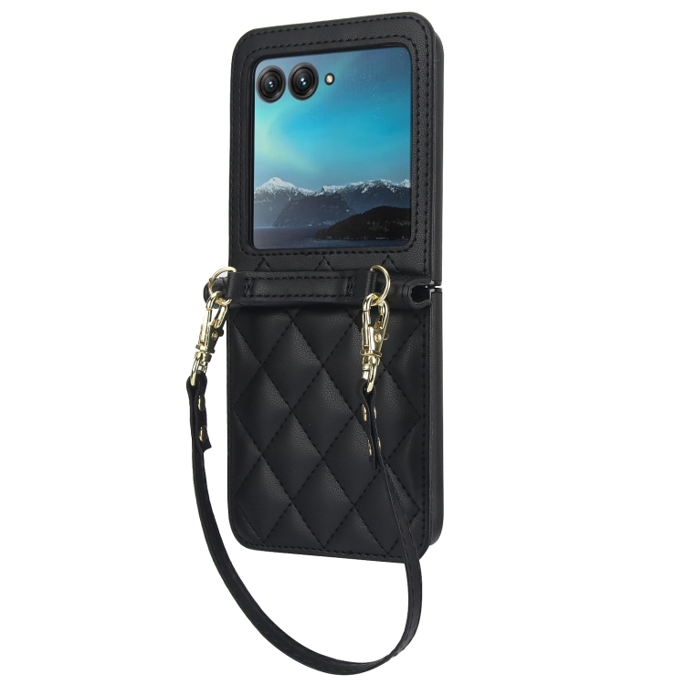 Estuche para Motorola Razr 40 con Textura Ultra Rómbica y Cordón Largo y Corto (Negro)