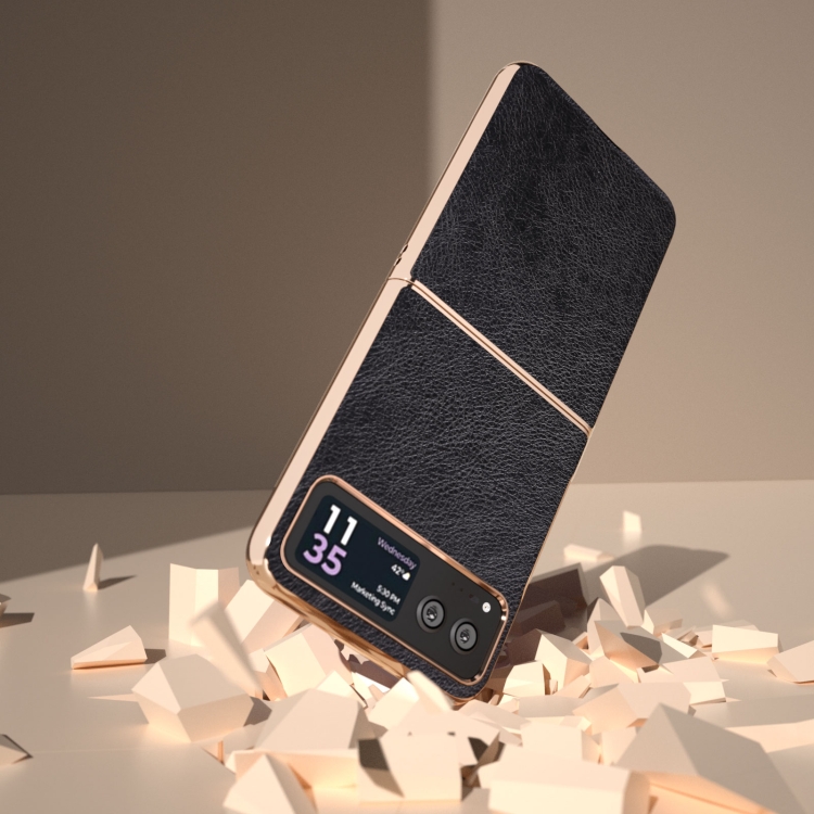 Caja de Teléfono Motorola Razr 40 Nano Galvanoplastia con Textura Lichi Doble Color (Negro)