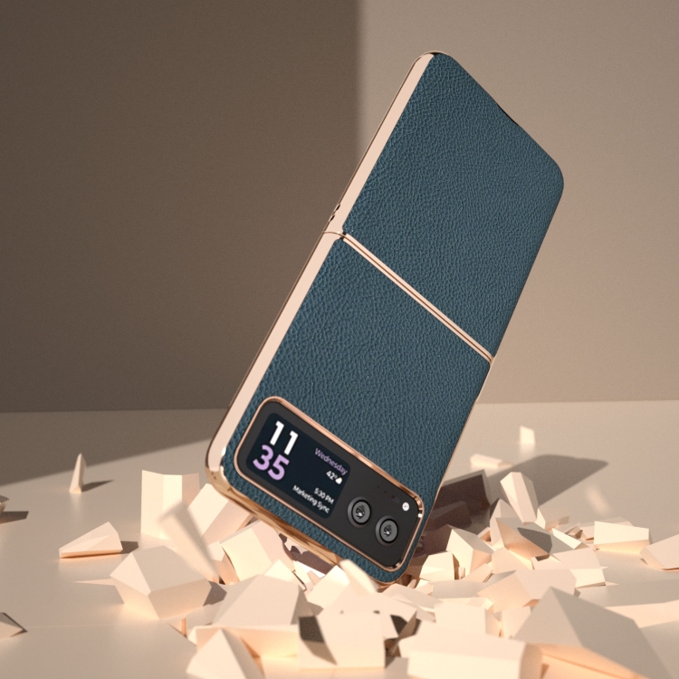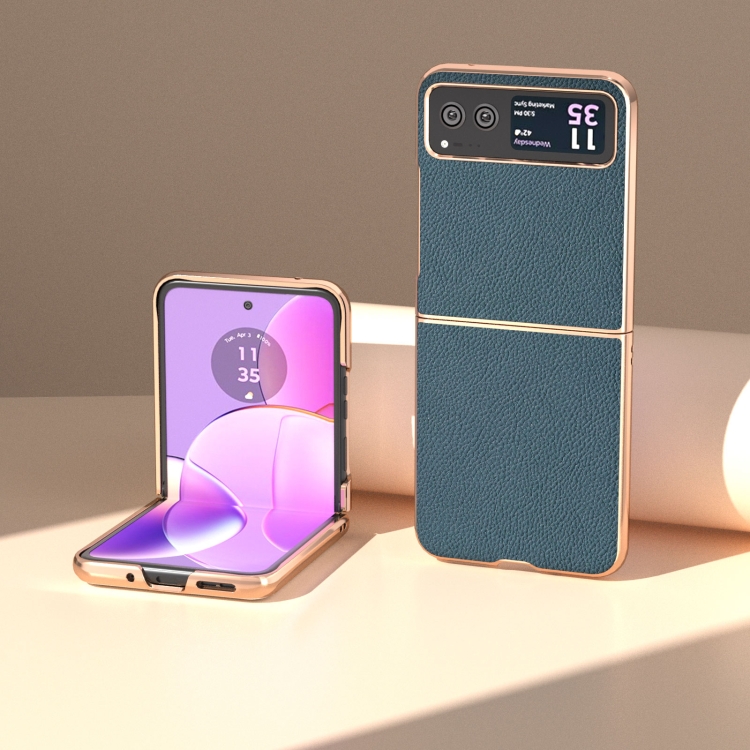 Funda para Motorola Razr 40 Nano Cuero Genuino + PC Galvanoplastia con Textura Litchi (Verde)