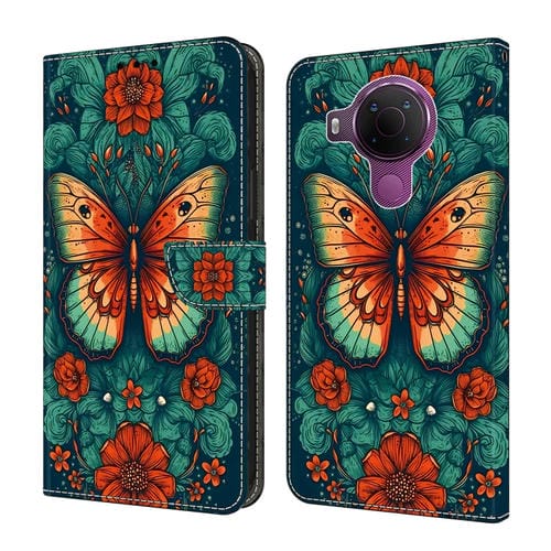 Funda de Cuero para Nokia 3.4/5.4 con Cristales y Diseño Mariposa de Flores
