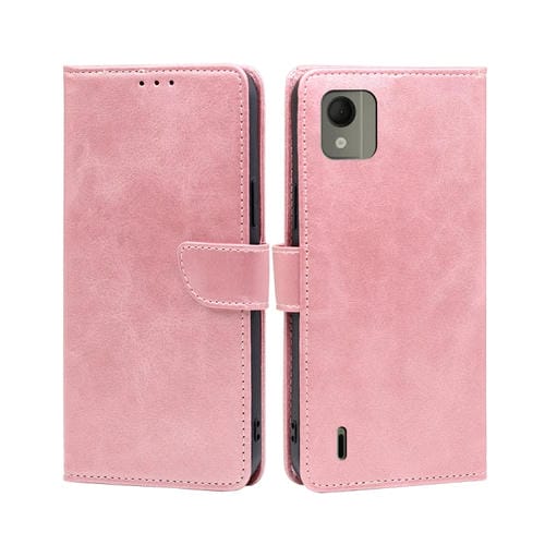 Funda para Nokia C110 4G de Cuero con Tapa, Hebilla y Textura de Becerro (Oro Rosa)