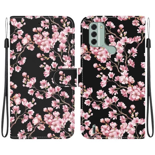 Funda de Cuero para Nokia C31 con Dibujo Coloreado y Textura de Cristal (Flor de Ciruelo)