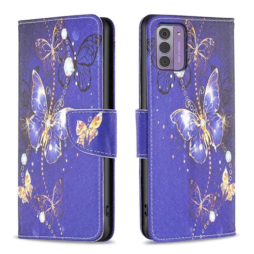 Estuche para Teléfono Nokia G42/G310 de Cuero con Dibujo Mariposa (Púrpura)