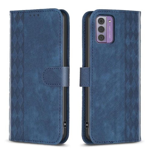 Estuche para Teléfono Nokia G42/G310 de Cuero en Relieve a Cuadros (Azul)