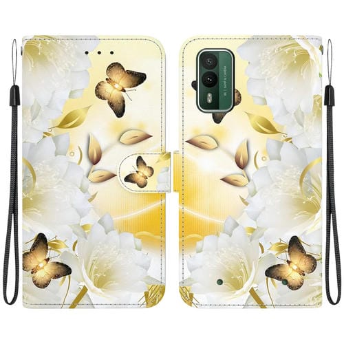 Funda de Cuero para Nokia Xr21 con Dibujo Coloreado y Textura de Cristal (Epiphyllum Mariposa Dorada)