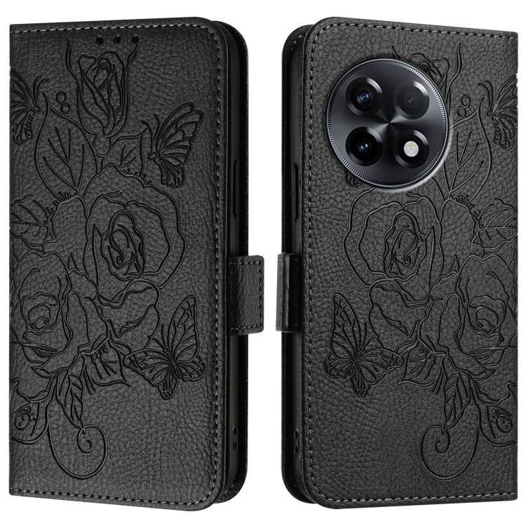 Funda de Cuero Antirrobo RFID para OnePlus 11R 5G con Relieve Rosa (Negro)
