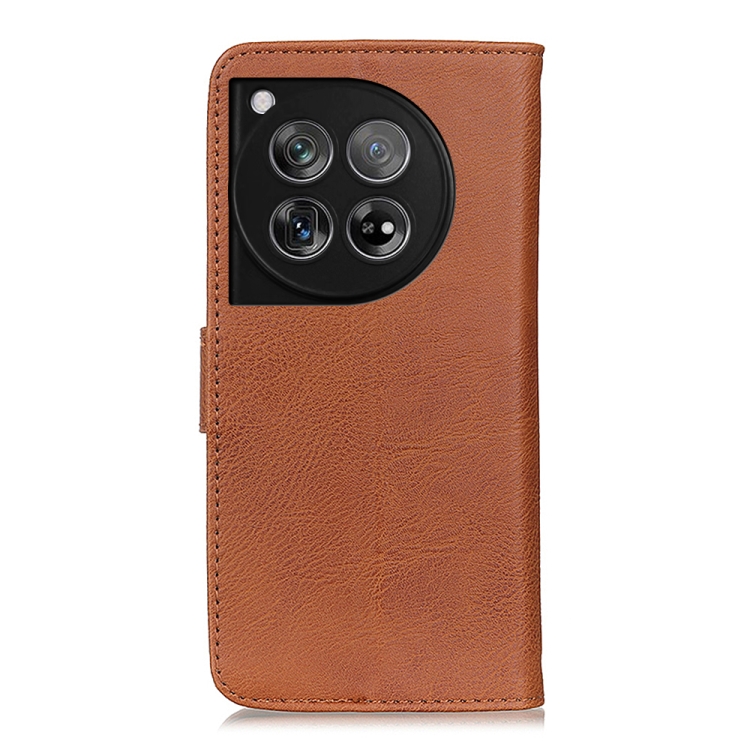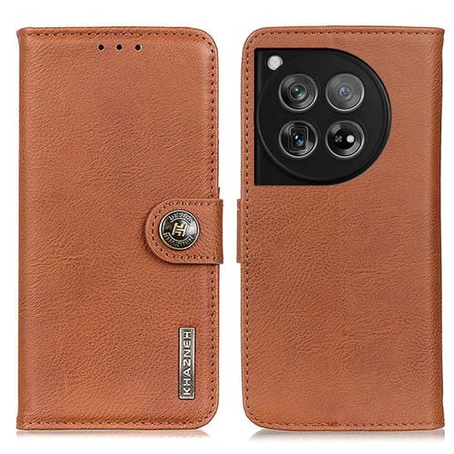 Funda para OnePlus 12 Khazneh de Cuero con Tapa y Textura de Piel de Vaca (Marrón)
