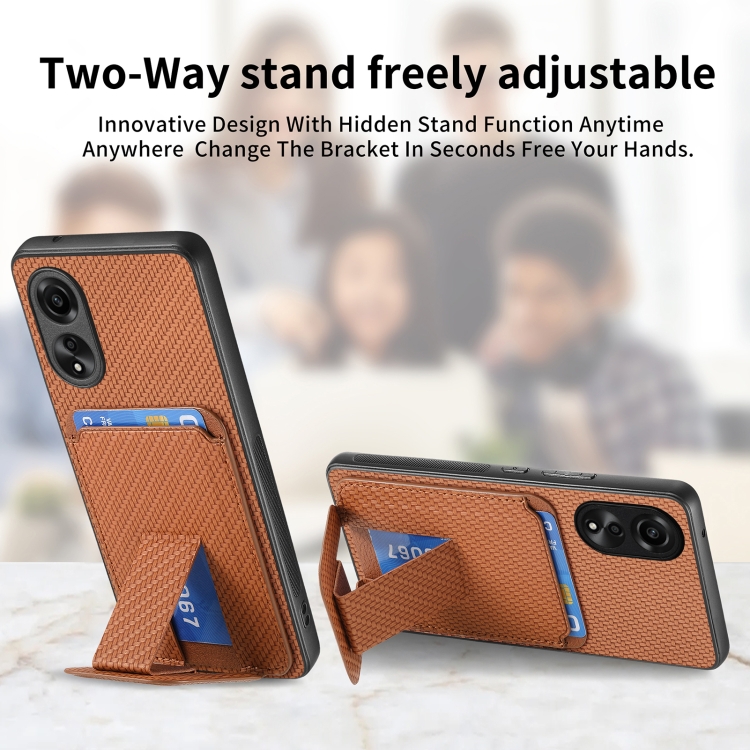 Para Oppo A16 Funda para Teléfono con Soporte Plegable y Bolsa para Tarjetas de Fibra de Carbono (Marrón)