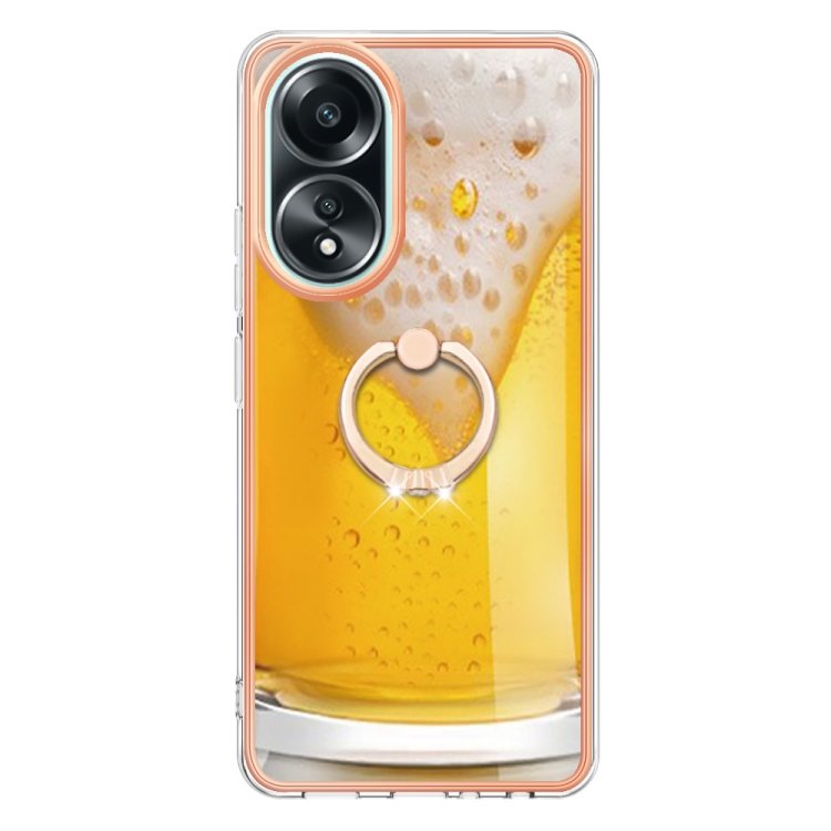 Para Oppo A58 4G Estuche para Teléfono Imd de Doble Cara con Galvanoplastia y Soporte para Anillo (Cerveza de Barril)