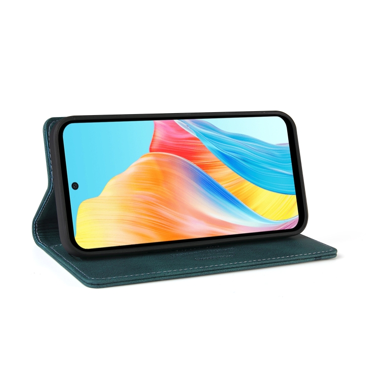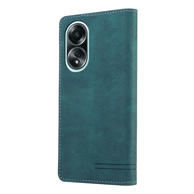 Para Oppo A58 4G Skin Feel Funda de Cuero con Tapa Horizontal con Cepillo Antirrobo y Soporte (Azul)