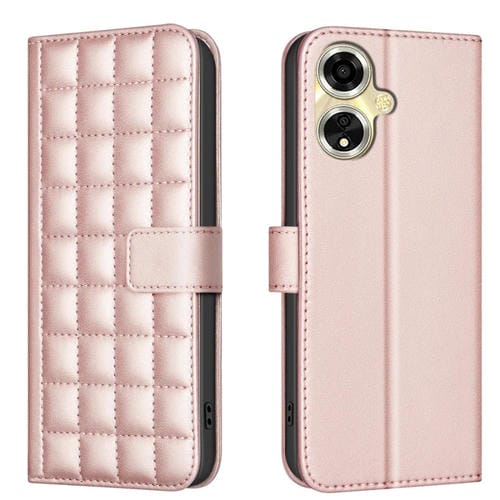 Para Oppo A59 5G Funda de Cuero con Textura Cuadrada (Oro Rosa)